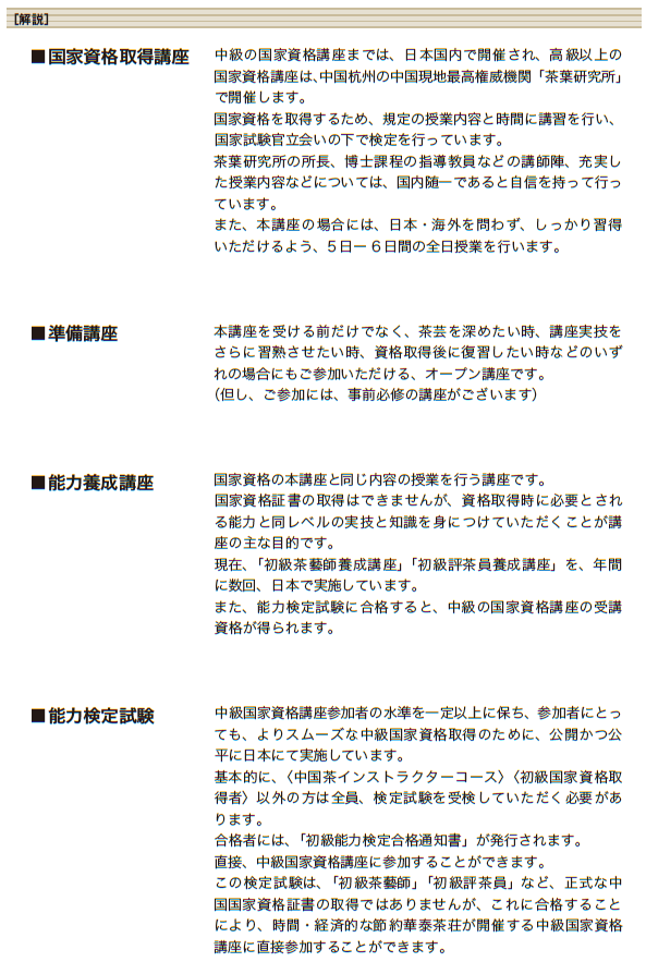 資格取得講座受講の申し込み及び問い合わせは華泰茶荘(order@chinatea.co.jp)まで。タイトル欄に「国家資格取得について」とご記入ください。