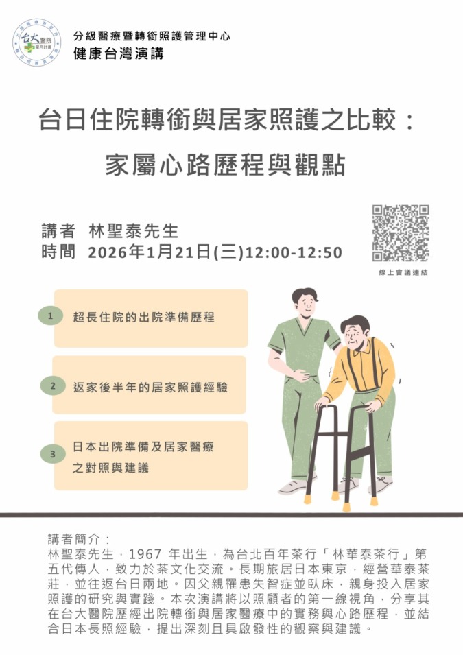 「台日住院轉銜與居家照護之比較」というテーマで1時間をお話ししてまいりました。